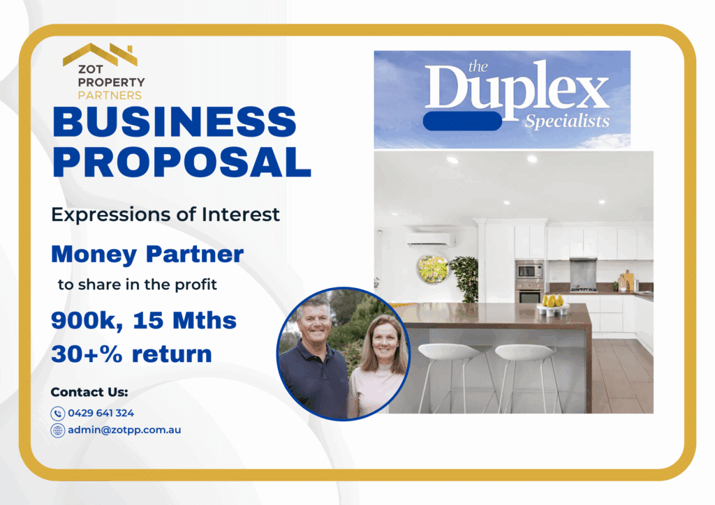 As an Equity Partner you supply the required equity usually by way of cash. You are part of the project (but not actively involved) and may be on the title and loan. Your reward is usually by way of a percentage of the profit of the project.